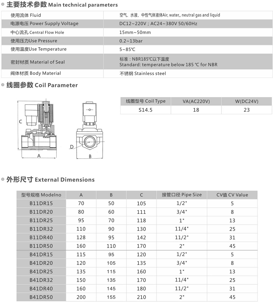 B11D pilot diaphragm solenoid valve is widely used in petrochemical,electric power, machinery, medical, scientific research, filling, building,industrial kiln, automatic control of pipeline media and other fields.